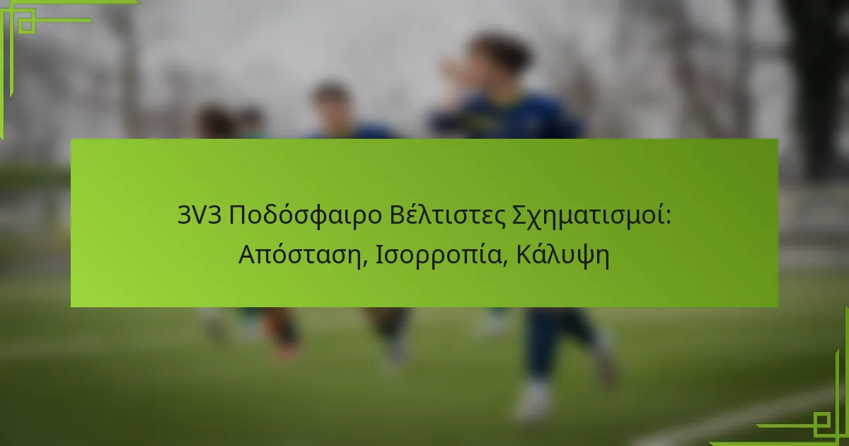 Στο ποδόσφαιρο 3v3, οι βέλτιστες σχηματισμοί είναι απαραίτητοι για την μεγιστοποίηση της απόδοσης της ομάδας μέσω αποτελεσματικής διάταξης, ισορροπίας και κάλυψης. Κοινές διατάξεις όπως οι 1-1-1, 2-1 και 1-2 προσφέρουν καθένα ξεχωριστά οφέλη και προκλήσεις, προσαρμοσμένα στις ικανότητες των παικτών και στη δυναμική του παιχνιδιού. Η σωστή διάταξη όχι μόνο ενισχύει την απόδοση των παικτών αλλά και προάγει καλύτερες ευκαιρίες πάσας και κάλυψη του γηπέδου, ενώ η επίτευξη ισορροπίας εξασφαλίζει μια συντονισμένη προσέγγιση τόσο στην επίθεση όσο και στην άμυνα.