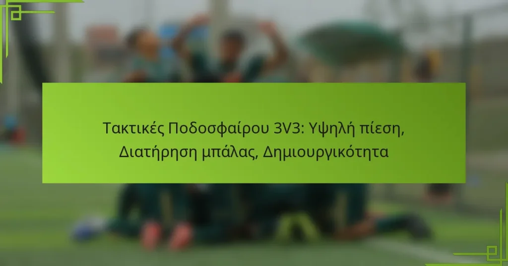 Στο ποδόσφαιρο 3v3, οι βασικές τακτικές όπως η υψηλή πίεση, η διατήρηση της μπάλας και η δημιουργικότητα παίζουν καθοριστικό ρόλο